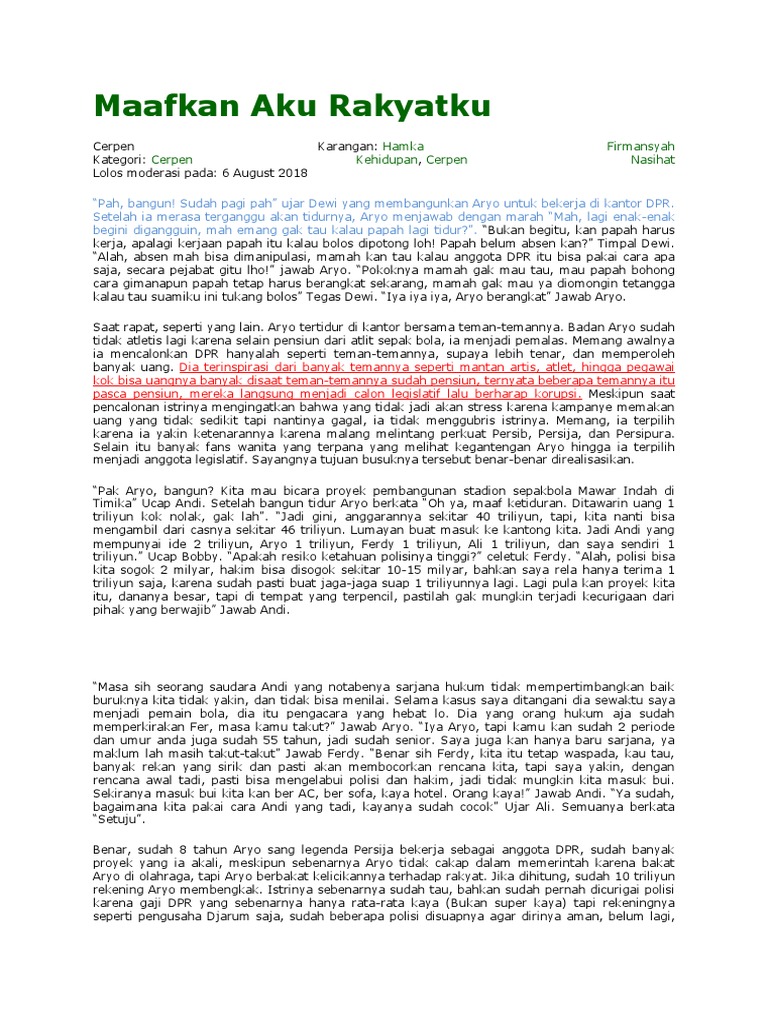 Maafkan Aku Rakyatku: Hamka Firmansyah Cerpen Kehidupan Cerpen Nasihat