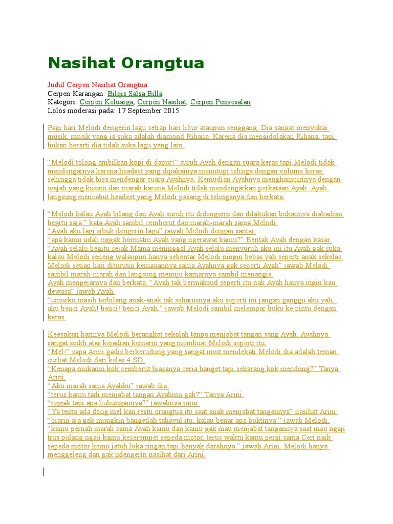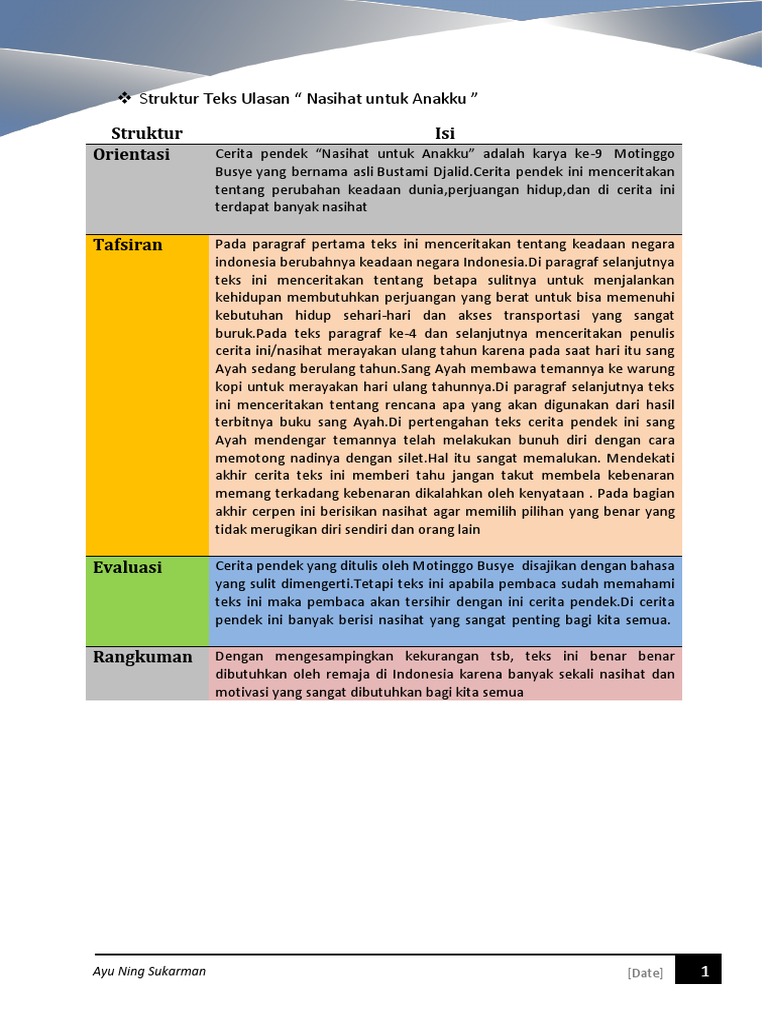 DOC) Tugas Teks Ulasan Cerpen ‘Nasihat Untuk Anakku’ | ph akm2019 - Academia.edu