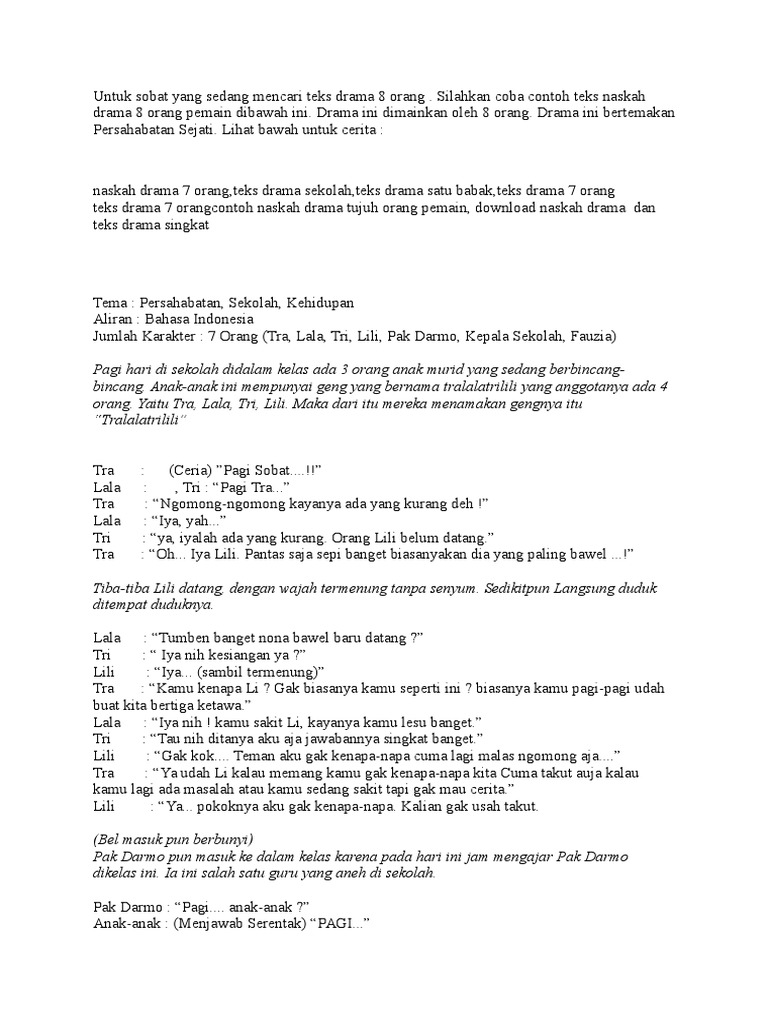 Contoh Naskah Drama 8 Orang Pemain tema Pelajar - Contoh Cerita …