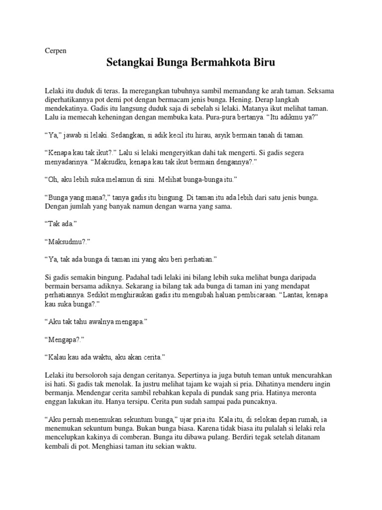 penerbit cerpen setangkai bunga bermahkota biru - Brainly.co.id