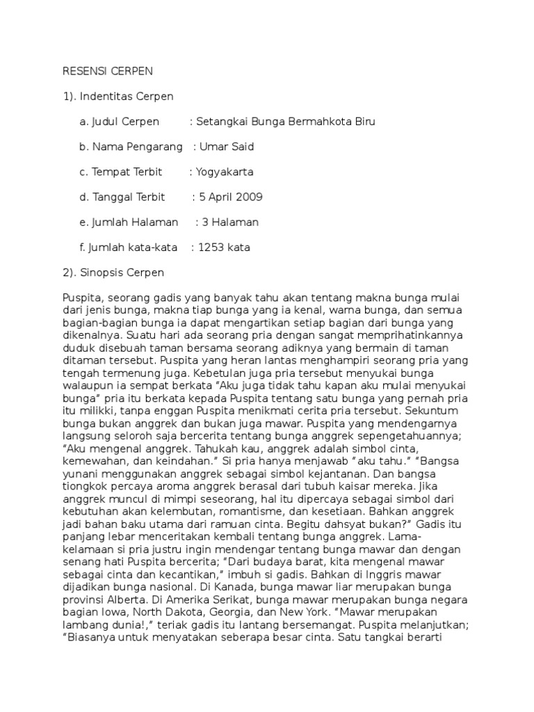 DOC) CONTOH RESENSI CERPEN | Wachyou Ramadhan - Academia.edu