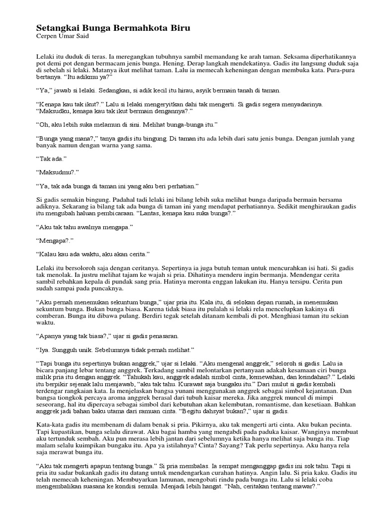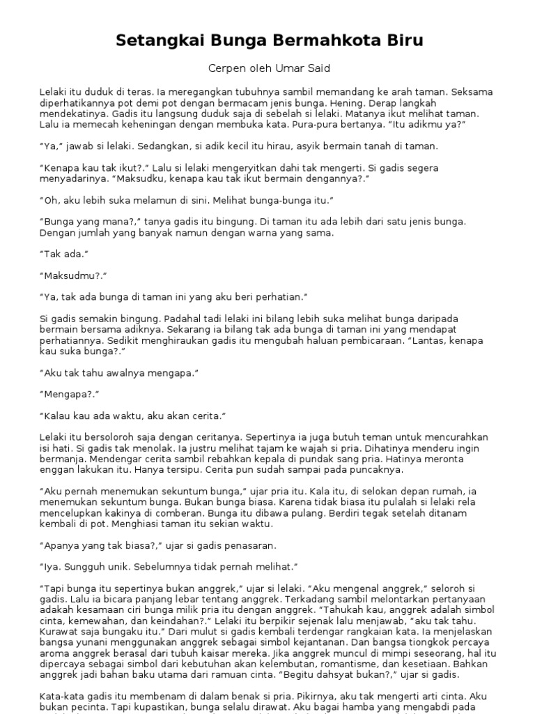 Cerpen karya umar said “setangkai bunga bermahkota biru” lalu apa makna dari “bunga biru” tersebut? - Brainly.co.id