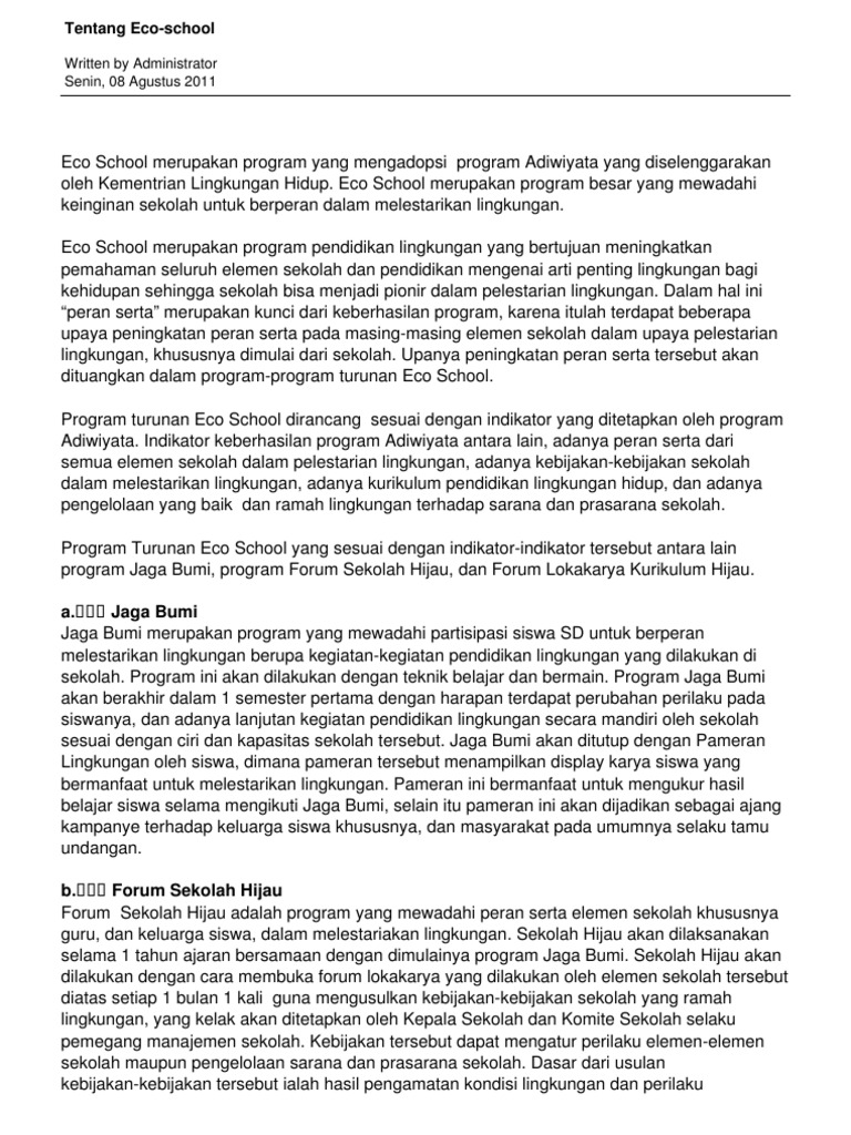 Contoh Karangan Sekolah Adiwiyata - Nusagates