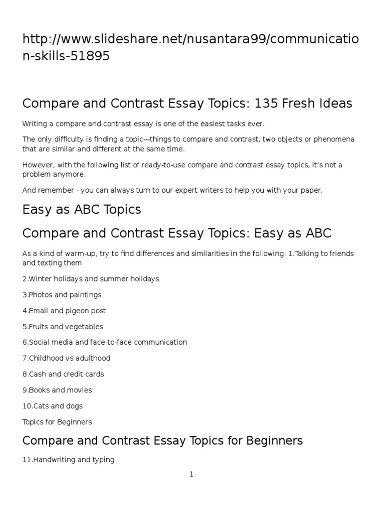 Ebook Compare And Contrast Essay Topics List | Download Ebook Booster