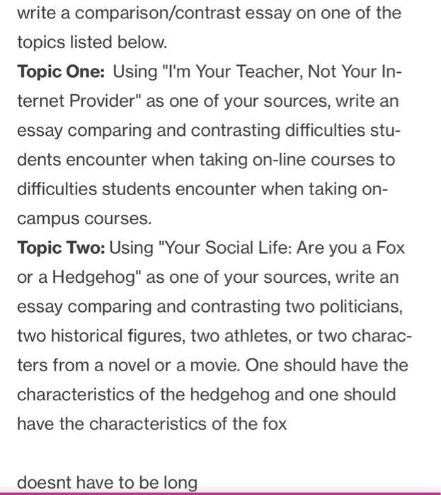 Solved: Write A Comparison/contrast Essay On One Of The To… | Chegg.com
