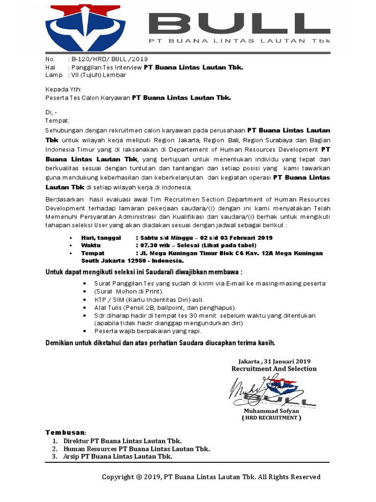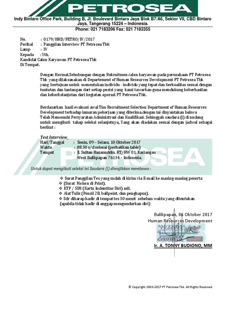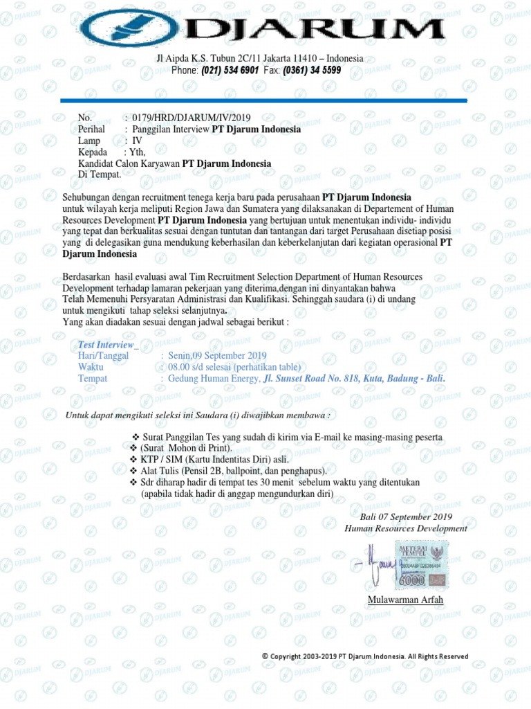 PDF) Surat Panggilan Interview PT Djarum Bali- | pcc pertamina - Academia.edu