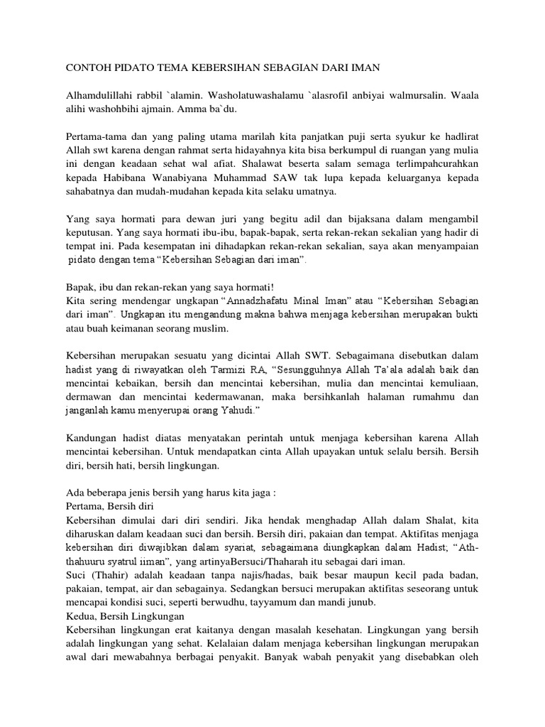 pidato tentang kebersihan sebagian dari iman - Brainly.co.id