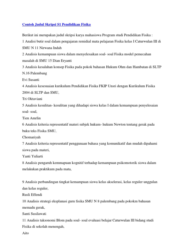 Contoh Judul Skripsi S1 Pendidikan Fisika