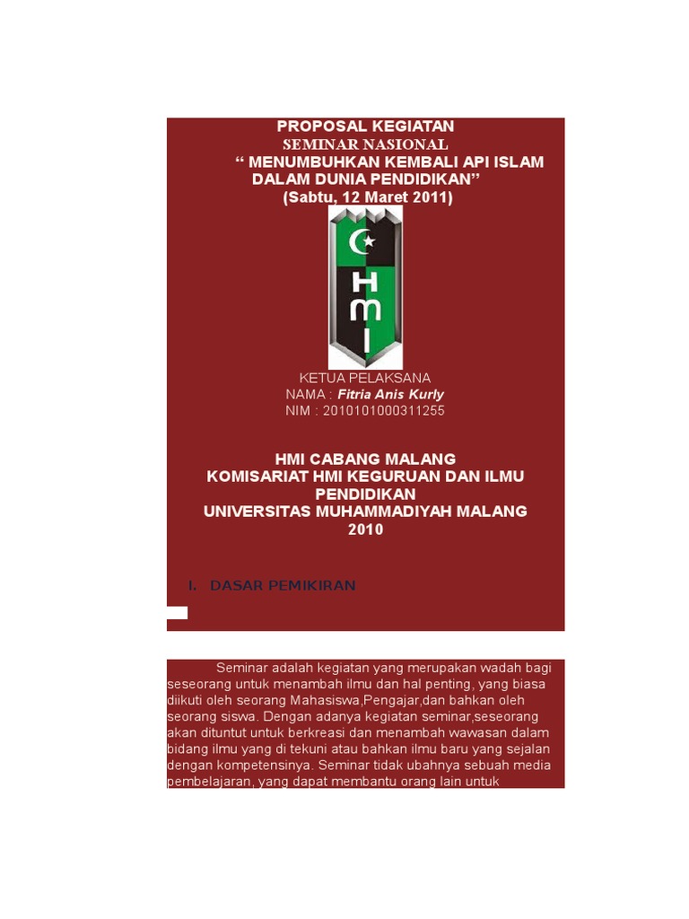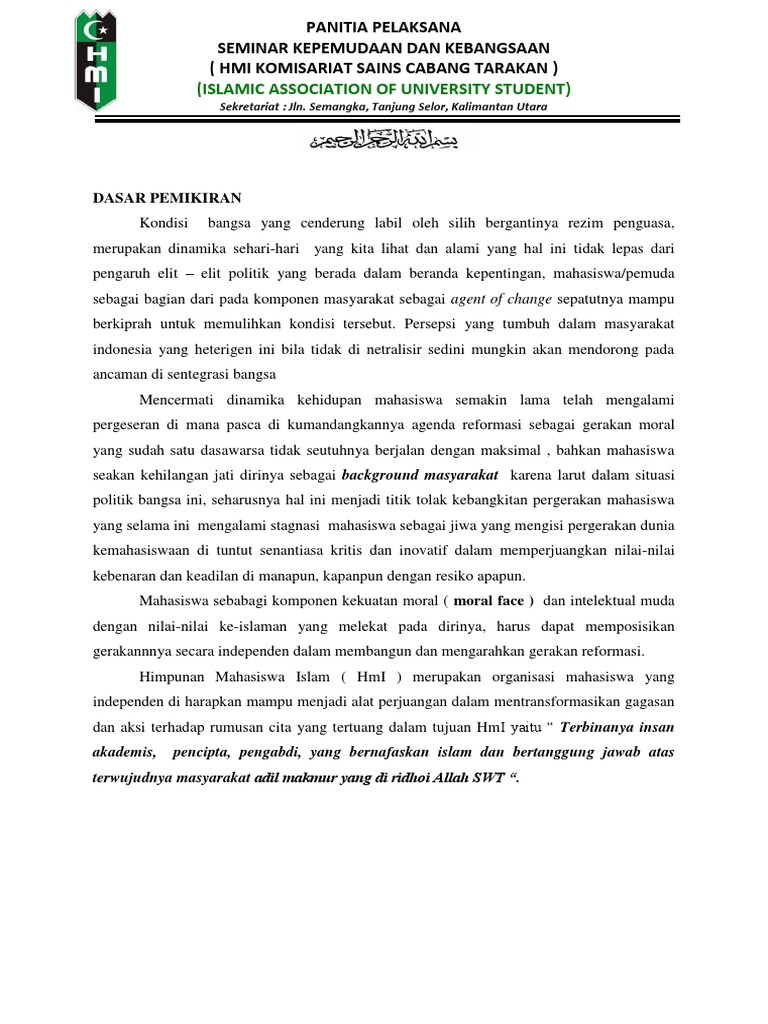 DOC) PROPOSAL SEMINAR NASIONAL FORUM PEMUDA PELAJAR INDONESIA IKATAN PEMUDA INDONESIA MANDIRI Tema : " MEMBANGUN PAHAM KEBANGSAAN | Anisa Safitri - Academia.edu