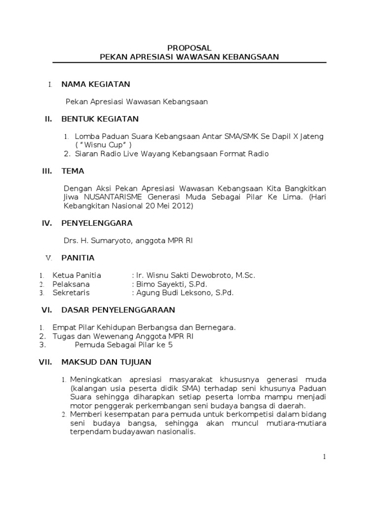 Proposal Pekan Apresiasi Wawasan Kebangsaan