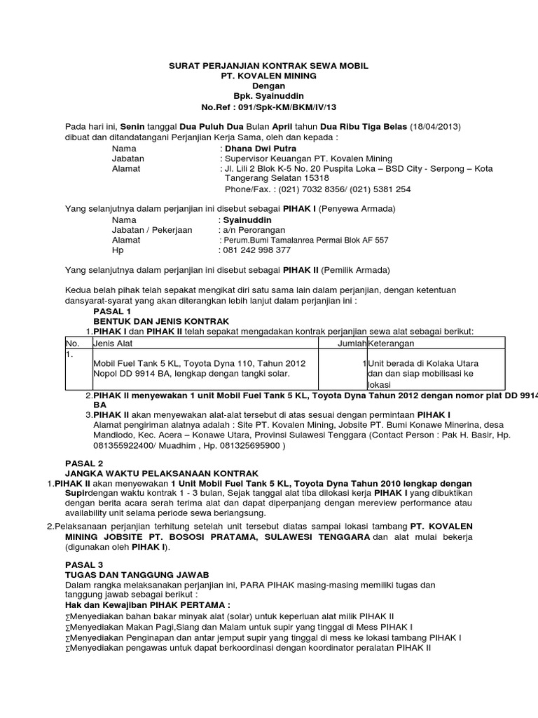 DOC) SURAT PERJANJIAN SEWA KONTRAK KENDARAAN | Javanet Mail - Academia.edu