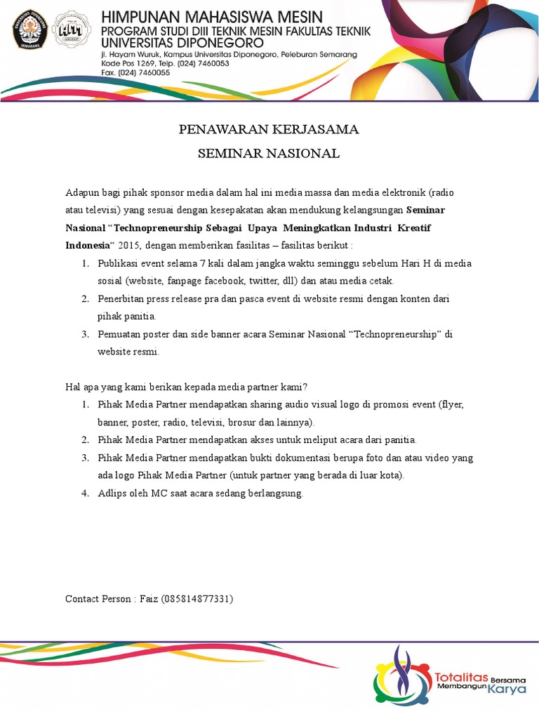 Contoh Surat Penawaran Kerjasama Media Partner - Kumpulan Contoh Surat
