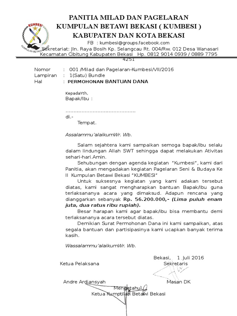 25+ Contoh Surat Permohonan Dana dan Bantuan - Contoh Surat