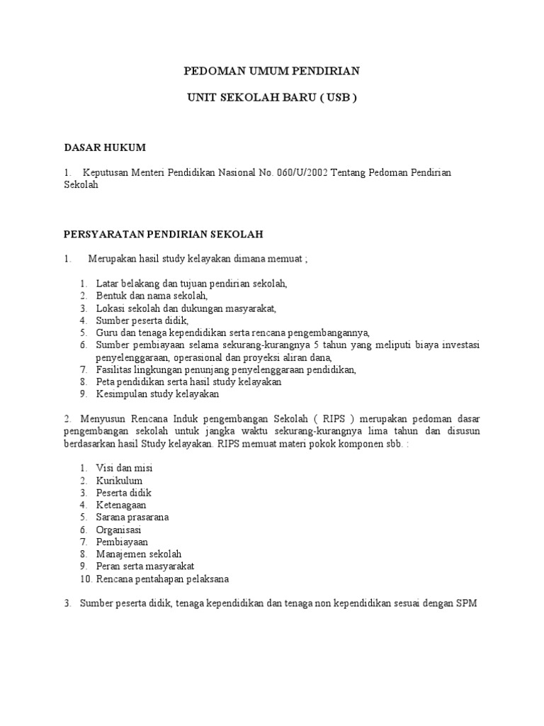 pedoman umum pendirian unit sekolah baru ( usb )