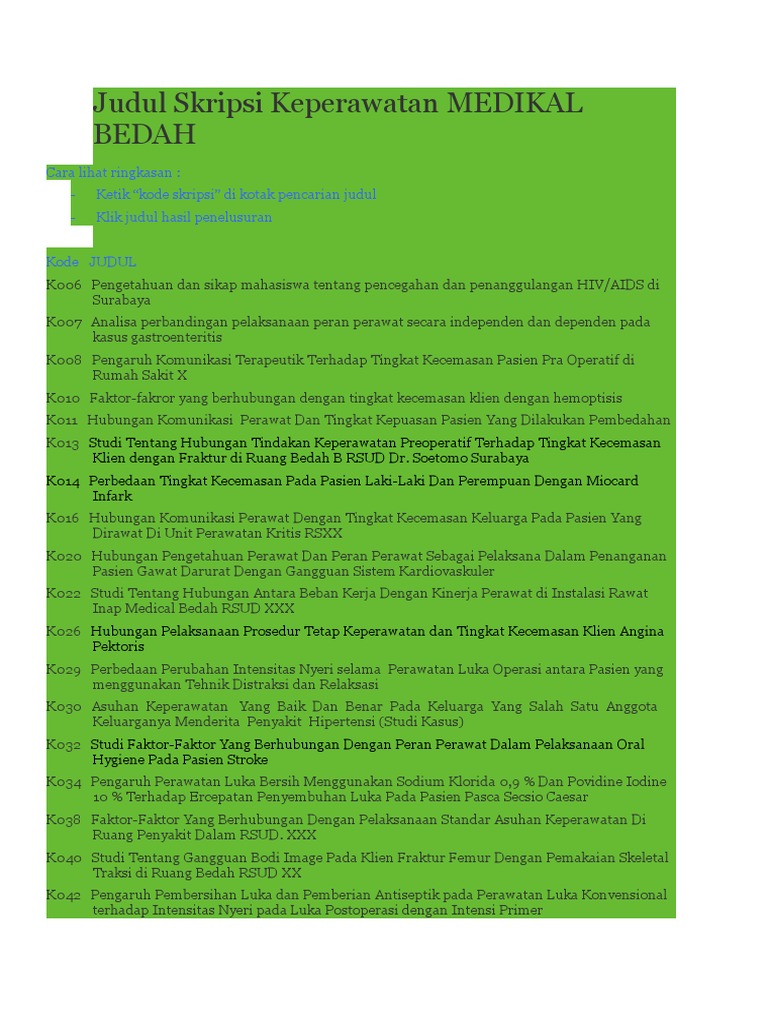 Judul Skripsi S1 Keperawatan Medikal Bedah - Kumpulan Berbagai Skripsi