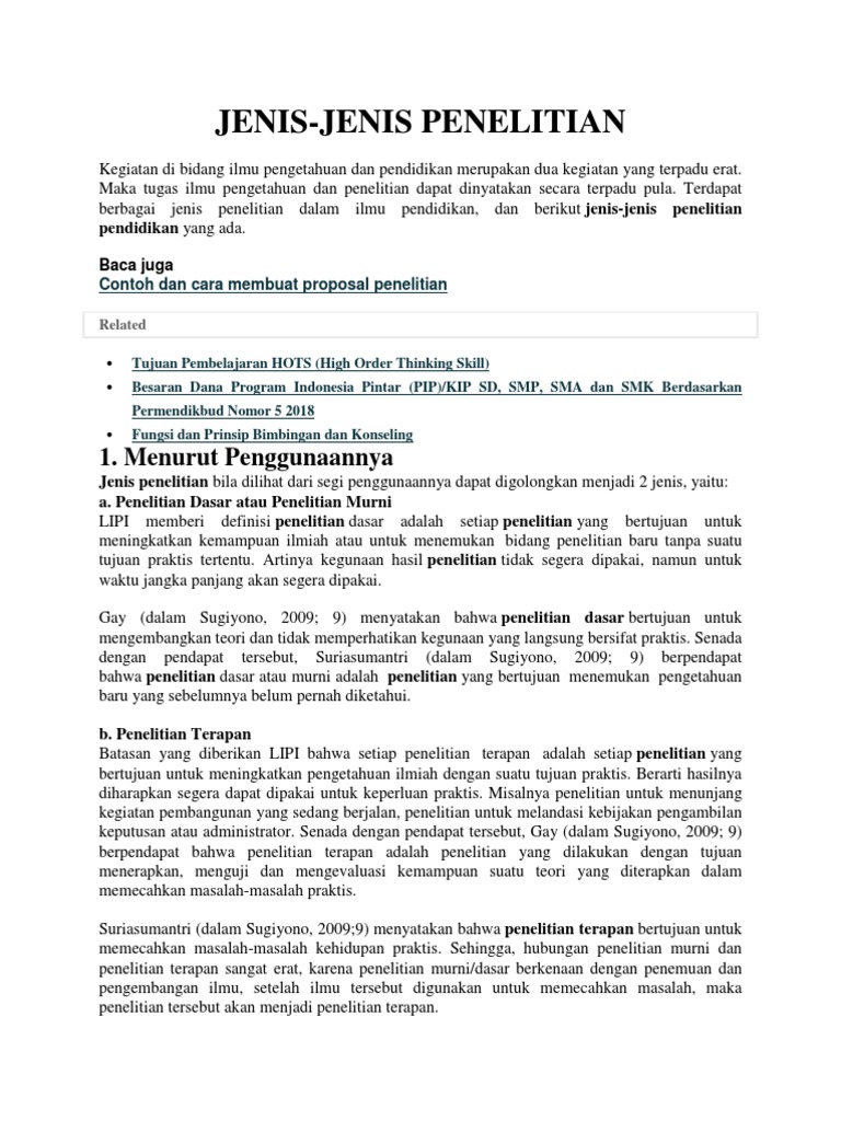 Jenis-Jenis Penelitian: 1. Menurut Penggunaannya