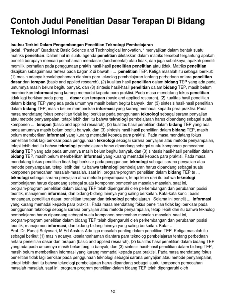 Contoh Judul Penelitian Dasar Terapan Di Bidang Teknologi Informasi