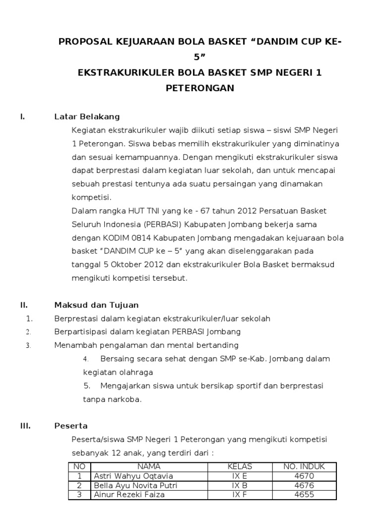 DOC) Proposal Permohonan Bantuan Dana Untuk Mengikuti Turnamen Bola Voli Antar PT | wisanggeni dv - Academia.edu