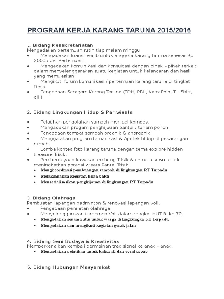 Contoh Proposal Program Kerja Karang Taruna - Berbagi Contoh Proposal
