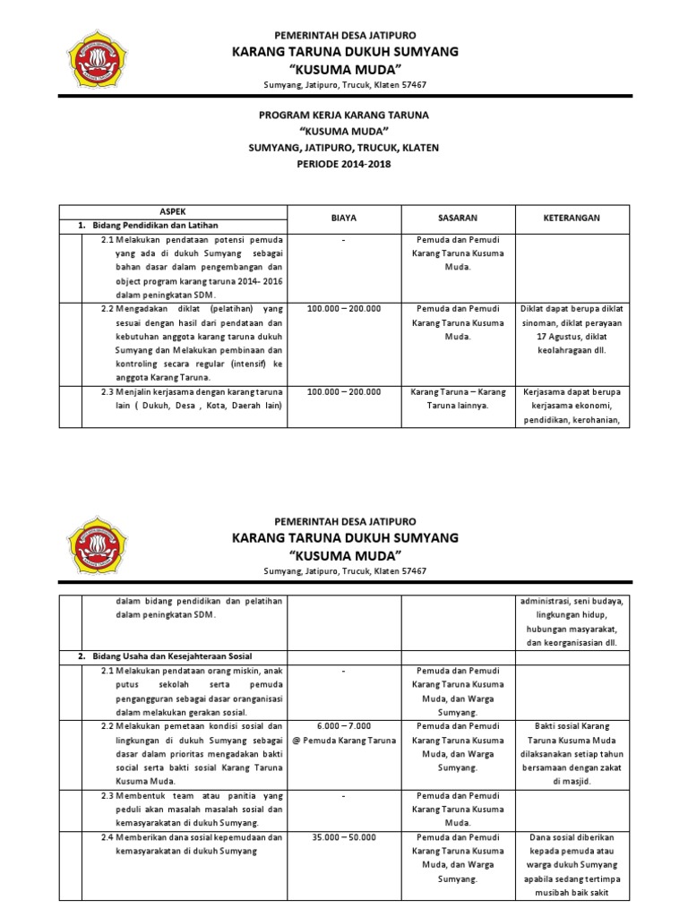PDF) PROPOSAL PENGAJUAN BANTUAN KARANG TARUNA KARANG TARUNA " KELUARGA PEMUDA KURO " | Ahmad Adin - Academia.edu