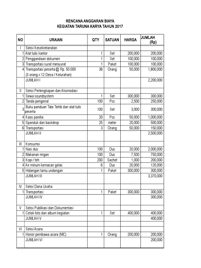 RAB Kegiatan Karangtaruna