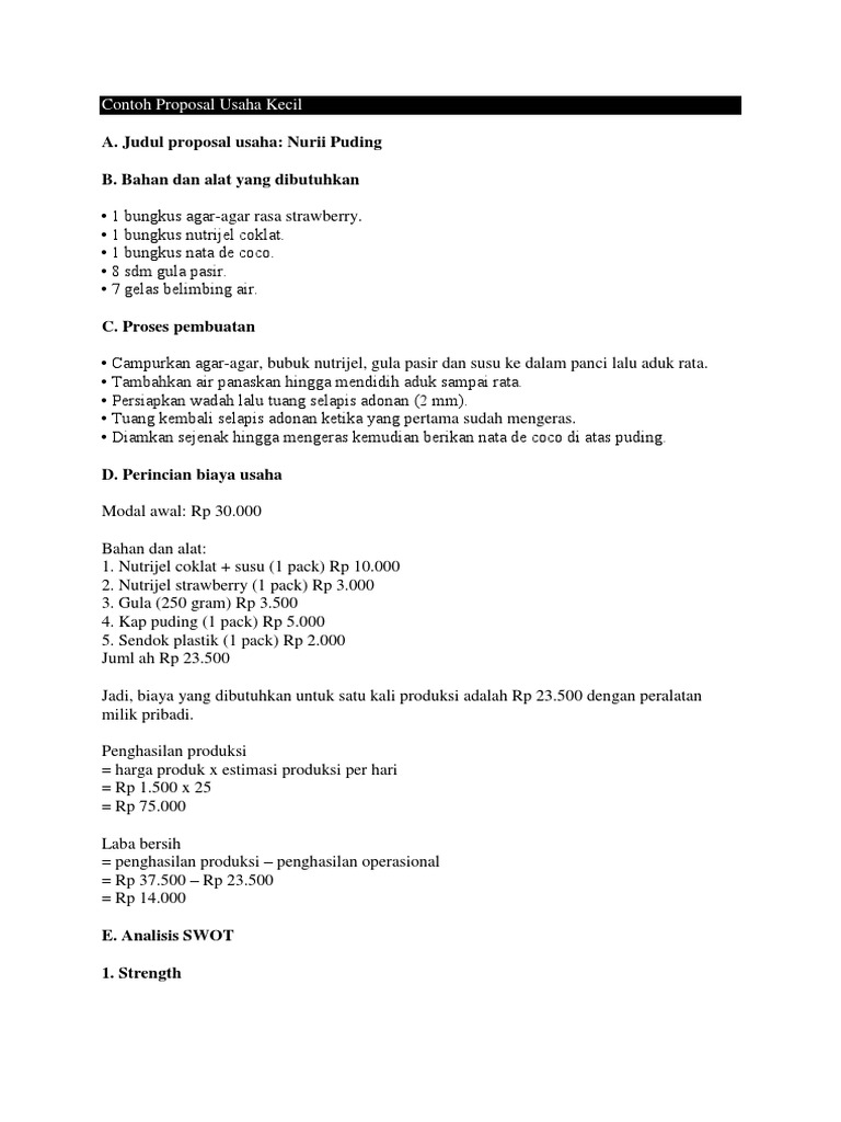 Contoh Proposal Usaha Puding Sedot - Contoh LBE
