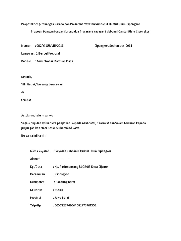 Contoh Proposal Bantuan Sarana Dan Prasarana - Berbagi Contoh Proposal