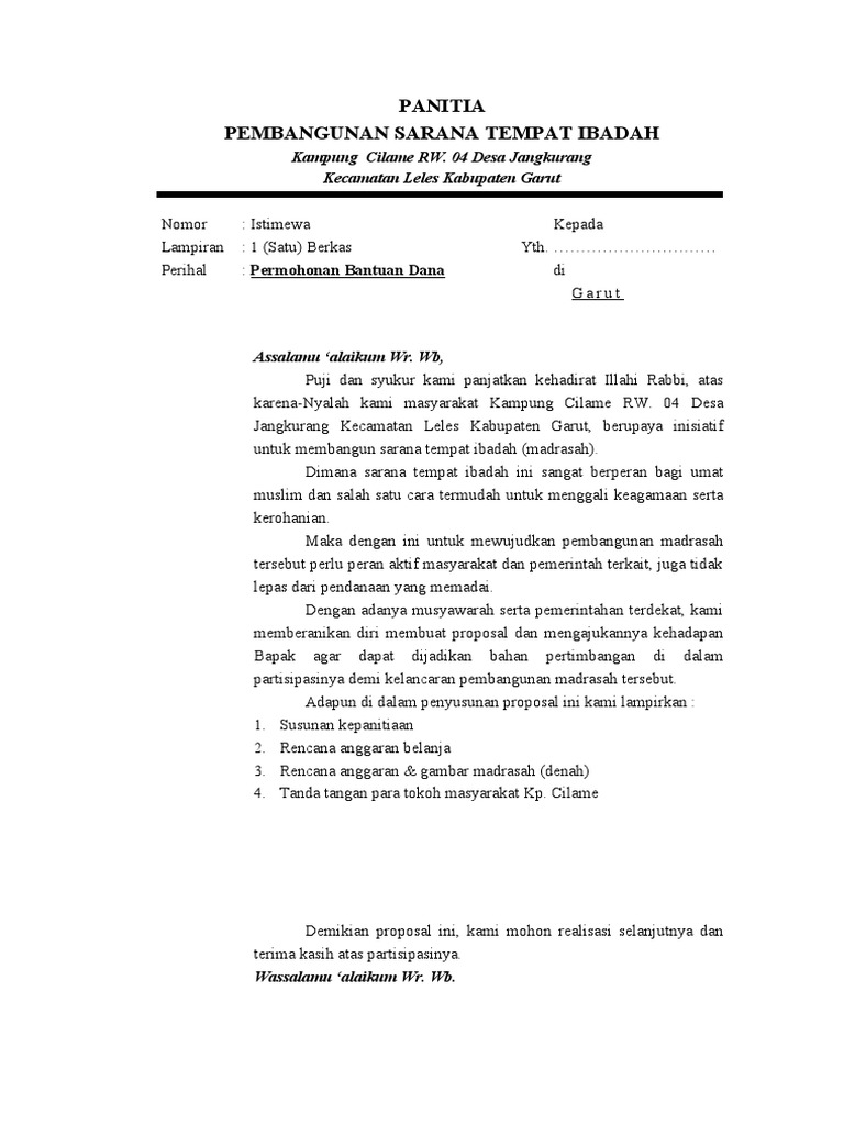 Contoh Proposal Pembangunan Gedung Madrasah Diniyah - Berbagi …
