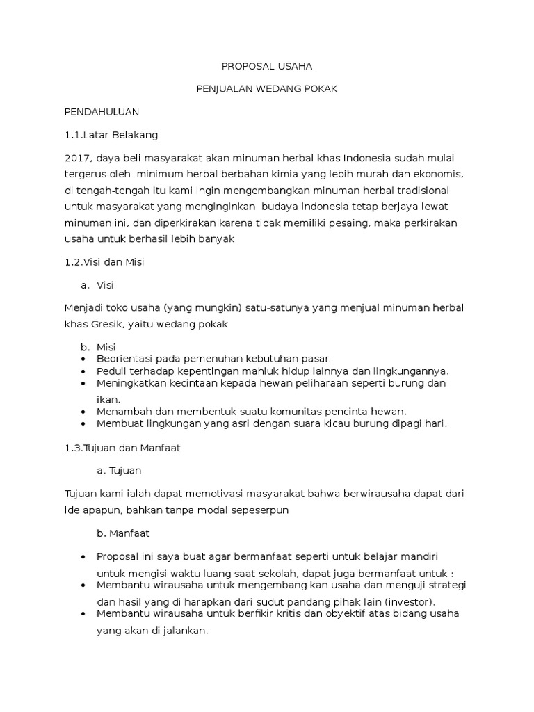 DOC) Proposal Usaha Kecil Minuman.docx | Yudith Lomakayy - Academia.edu