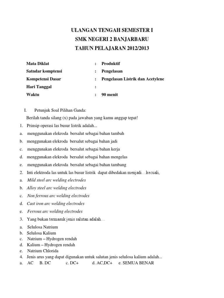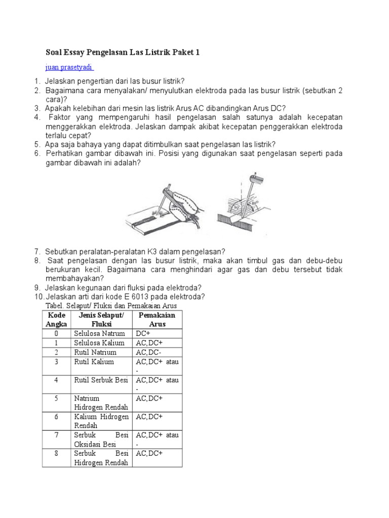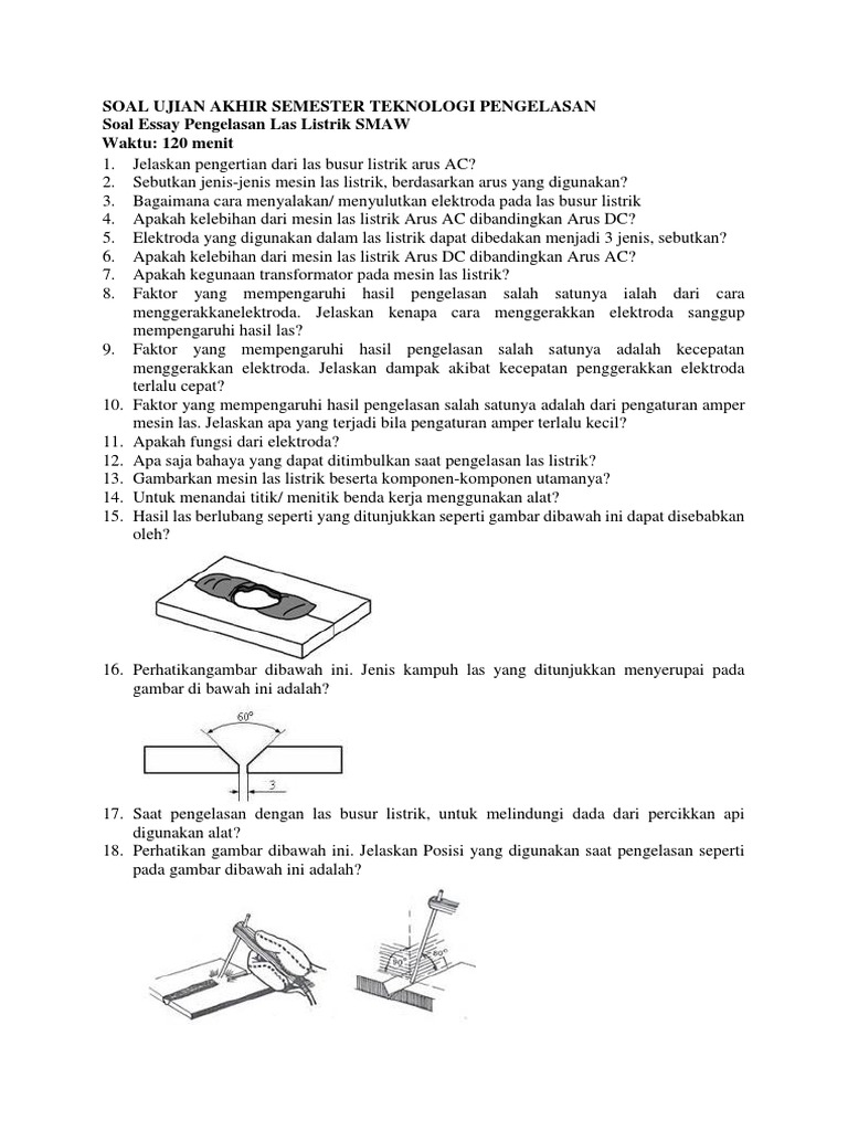 Contoh Soal Essay Dan Jawaban Teknik Pengelasan