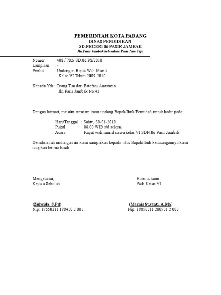PDF) CONTOH SURAT UNDANGAN RAPAT ORANGTUA MURID.pdf | reza harahap - Academia.edu
