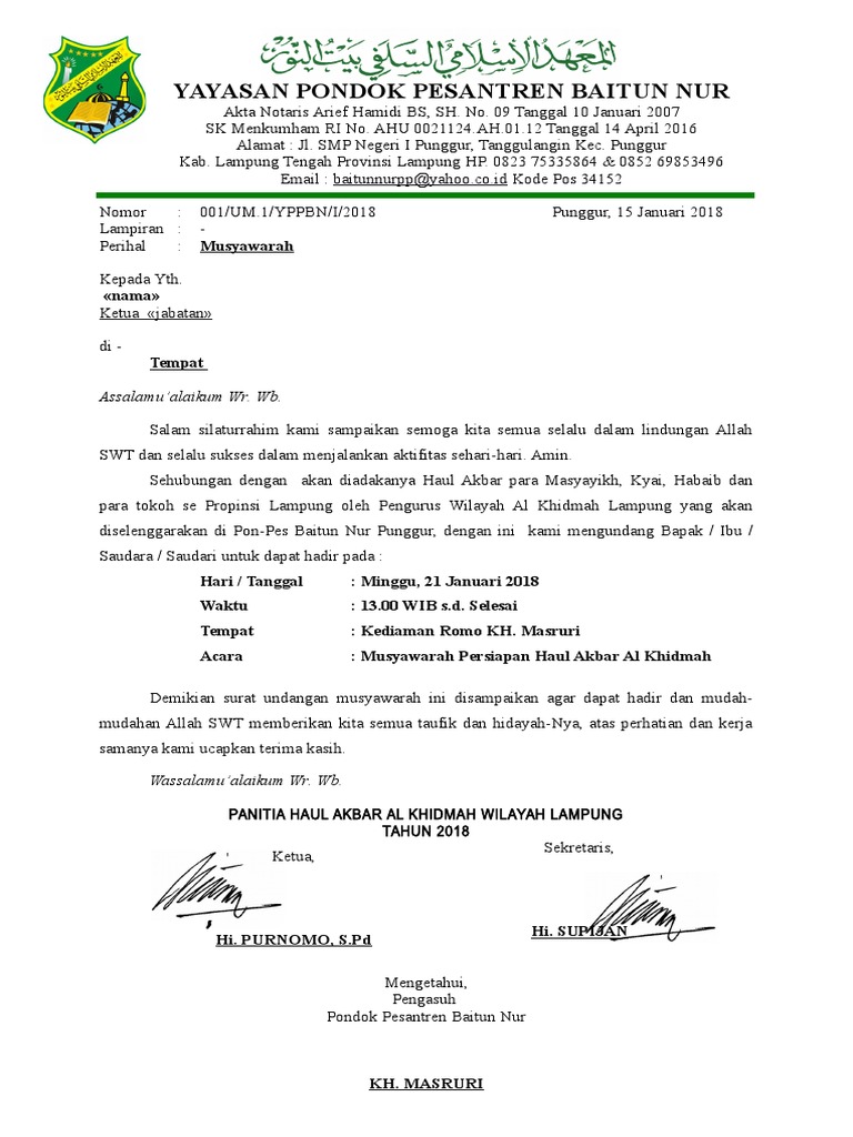 Contoh Surat Undangan Haul Akbar - Sample Surat Undangan