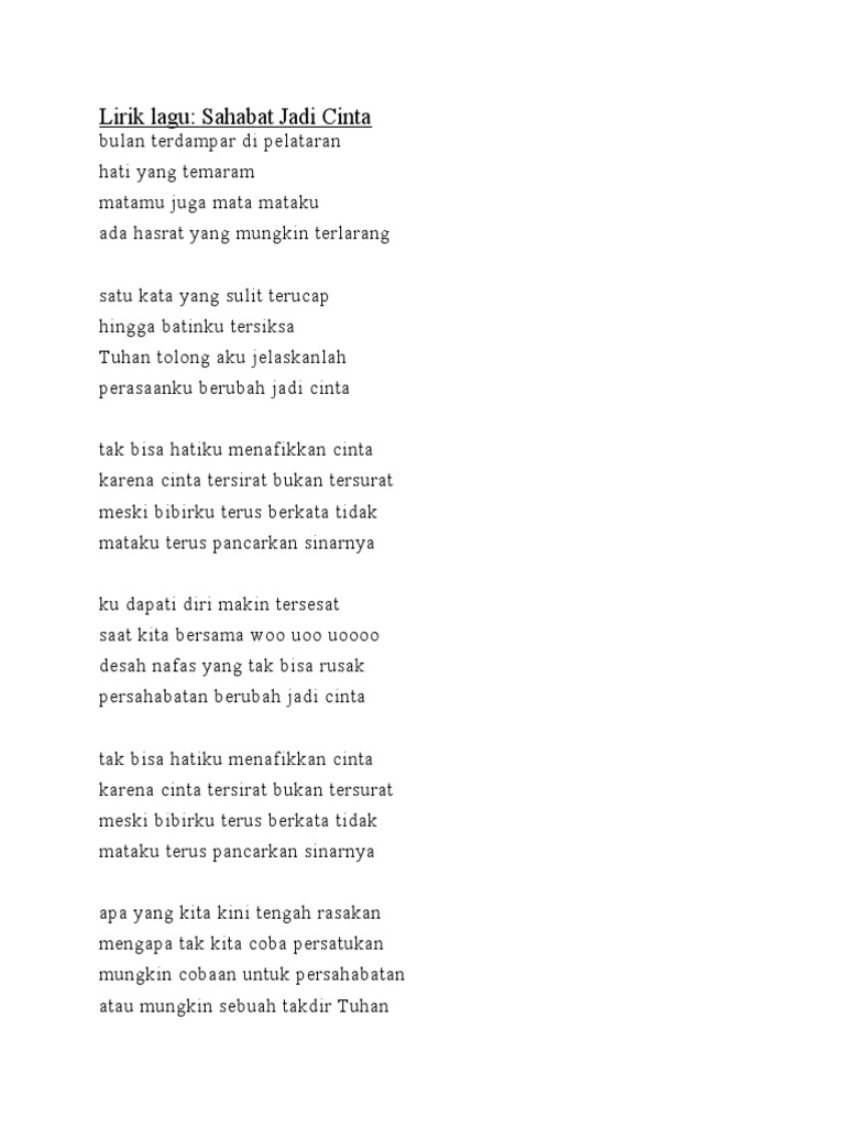 Lirik Lagu Sahabat Jadi Cinta | Lirik Plus