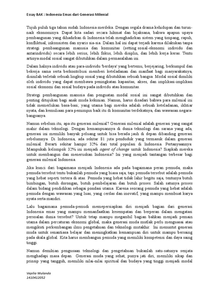 Contoh Paper Finalis LOMBA ESSAY GENERASI MILENIAL CILACAP 2018 …