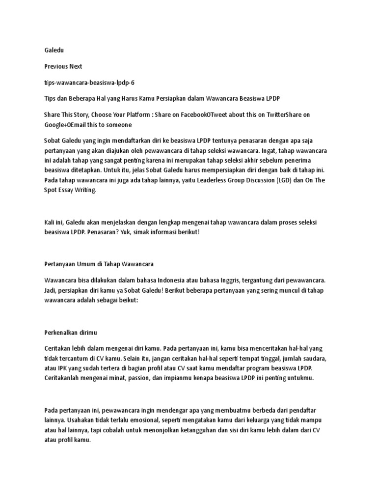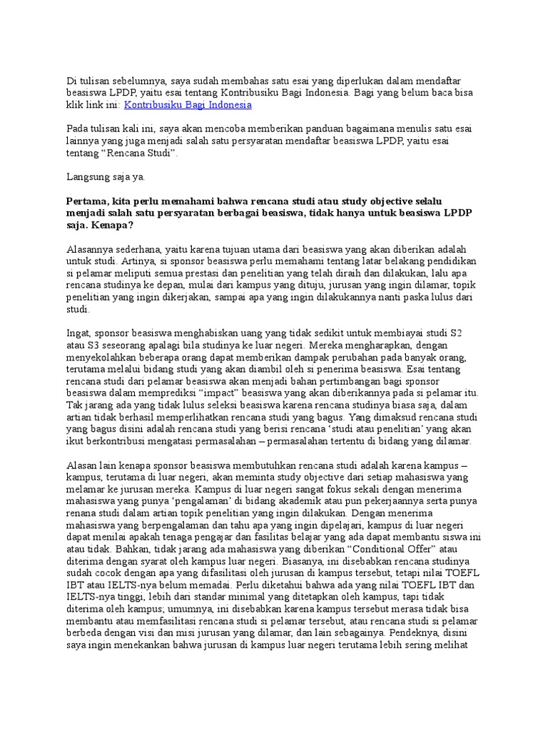 PDF) Contoh Essay Beasiswa LPDP dan Tips Membuatnya Tips Membuat Essay Beasiswa LPDP | Syaifi Al-Mahfudzi - Academia.edu