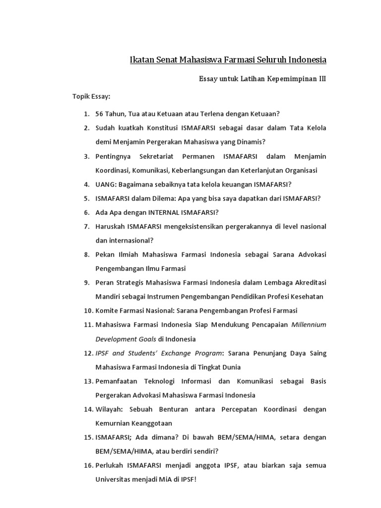 Topik-topik Essay LK 3 ISMAFARSI