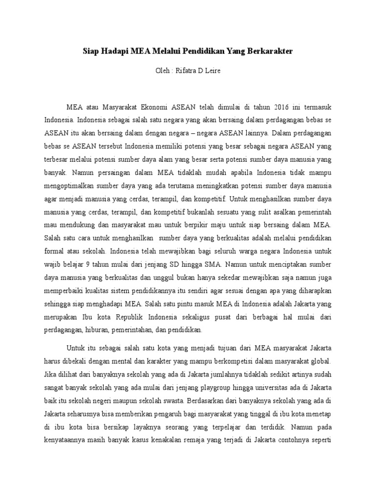 Essay pendidikan yang berkarakter
