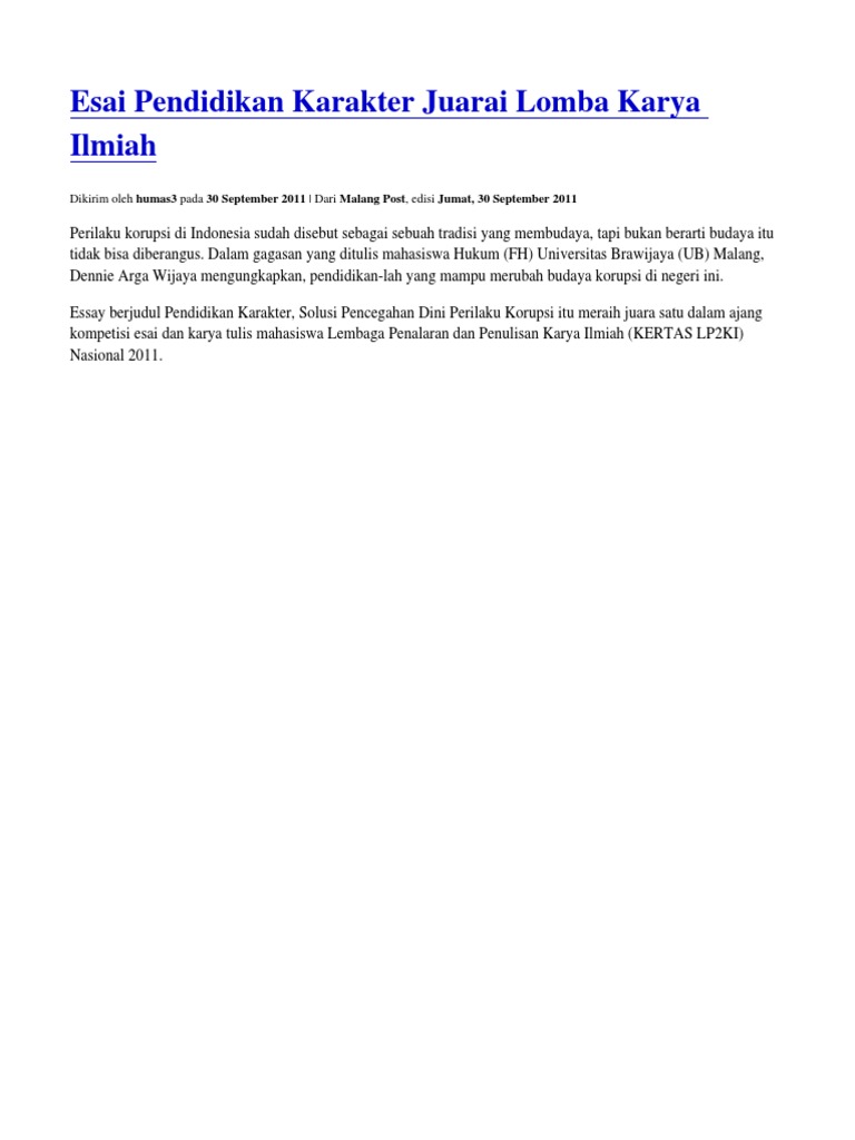 Contoh Esai Ilmiah Mengenai Pendidikan Karakter