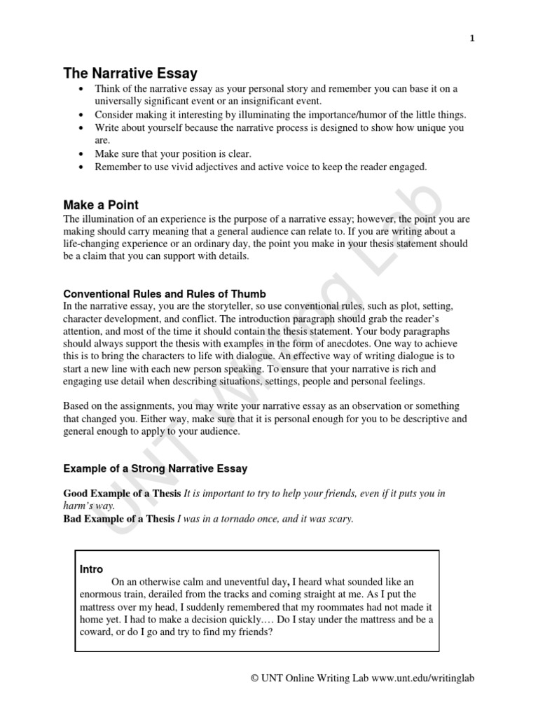 UNTOWL Narrative Essays Example With Thesis Statement | Narrative | Narration