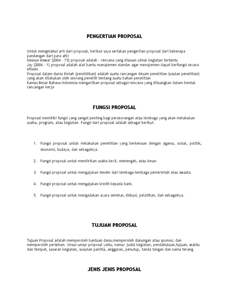 PDF) Proposal - Pengertian, Fungsi, Tujuan, Unsur dan Ciri-Cirinya | Dimas Zhafira F - Academia.edu