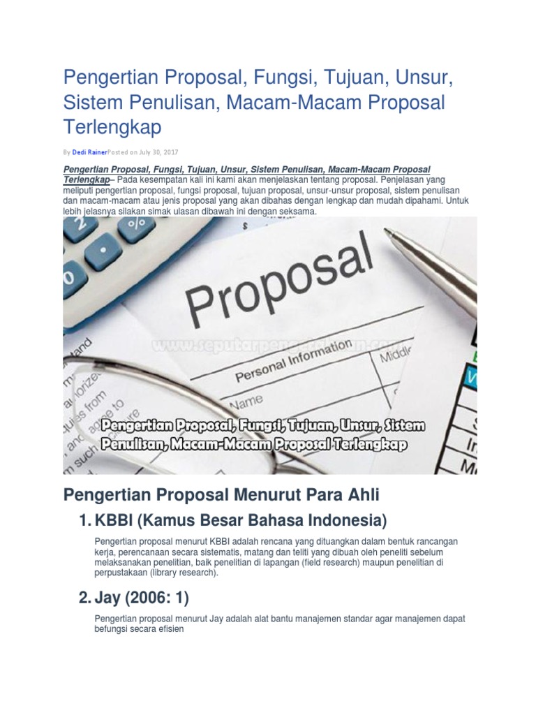 Pengertian, Fungsi, Jenis Proposal - Pengertian Ahli - Pengertian Ahli