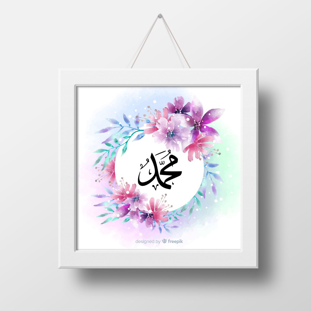 Allah Muhammad #8 - Poster Kaligrafi Modern & Bingkai A4 - Pigura …