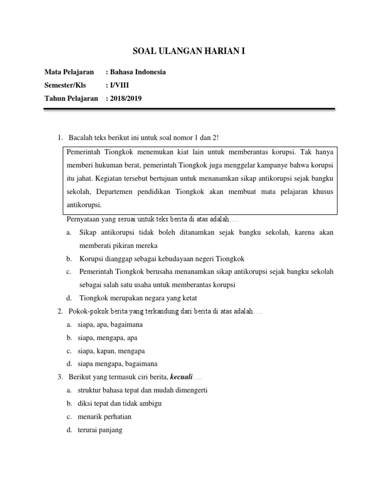 13 BAHASA INDONESIA uasbn1122.docx - This post was republished to E-SMART SMA AL HIKMAH SURABAYA at 11:16:00 AM BAHASA INDONESIA 1 Perhatikan penggalan | Course Hero