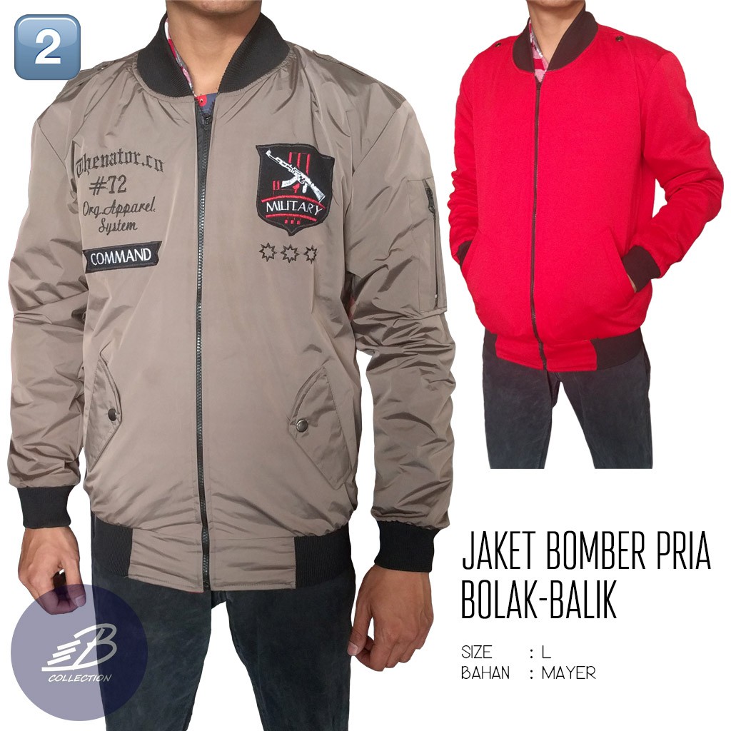 Jaket Bomber Pria Bolak-Balik Bahan Taslan Mayer Fleece - Jaket …