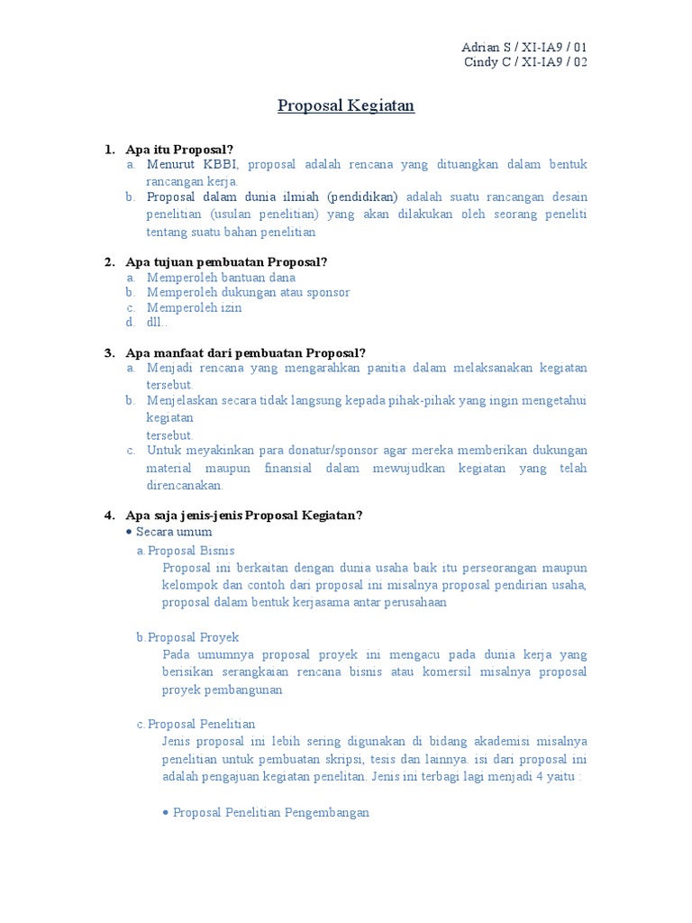 Jenis Jenis Proposal Materi Bahasa Indonesia - Mata Pendidikan