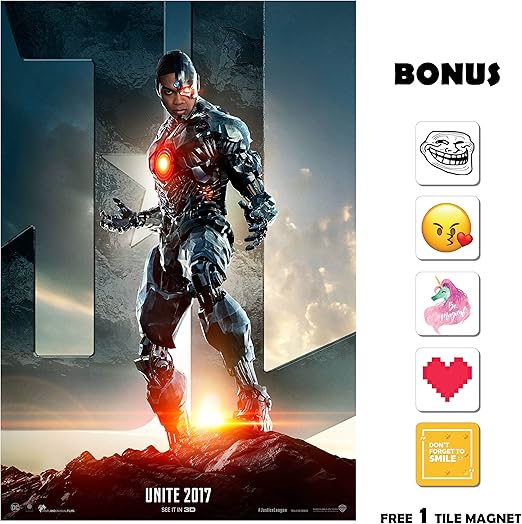 Amazon.com: Movie Poster Justice League (2017) - Cyborg - 13 in x 19 in Flyer Borderless + Free 1 Tile Magnet: Posters & Prints