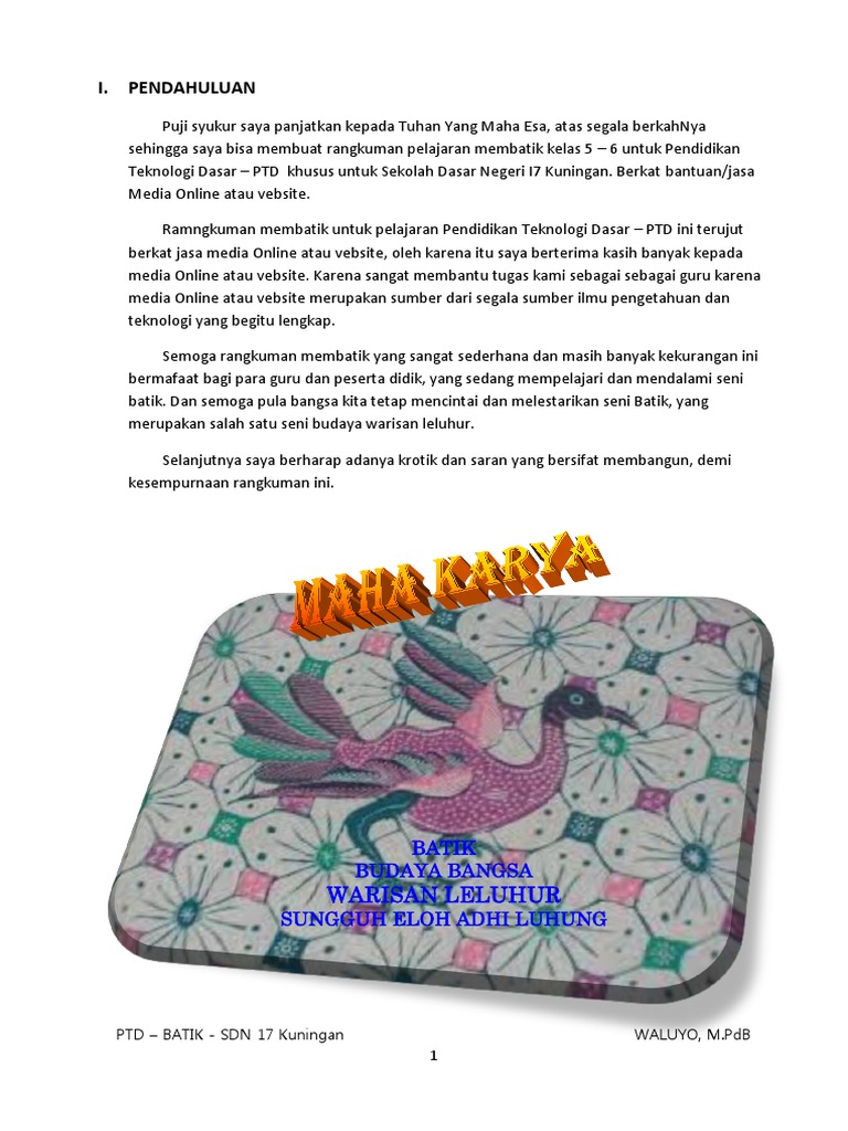 Karya Seni Batik. Pengertian Penjelasan Contoh Laporan Makalah Dalam Format PDF