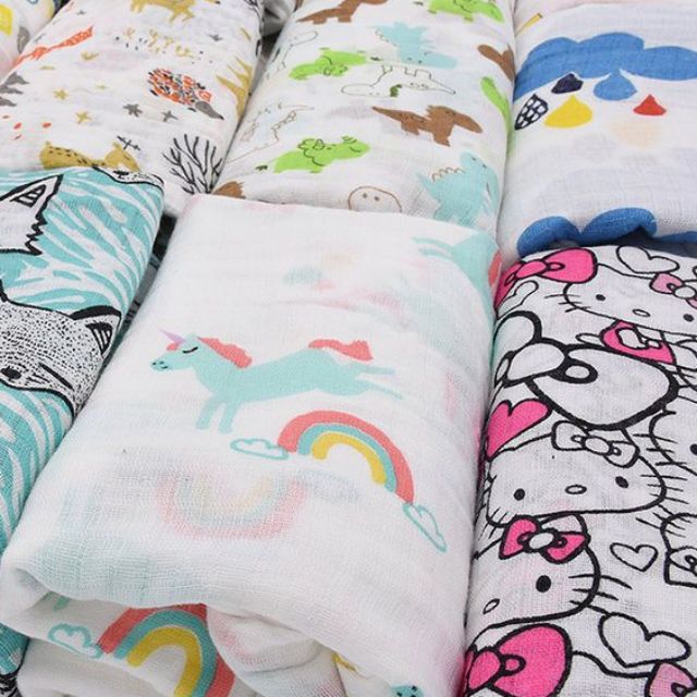 Newborn Baby Muslin Swaddle Soft Blanket Kain Bedung Kain Selimut Napkin Lampin Printed - Premium Quality