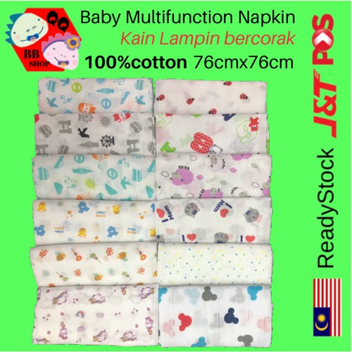 Character Baby6pcs Baby Napkin / Kain Lampin Bayi (75cmx75cm) (100% Cotton) | Lazada