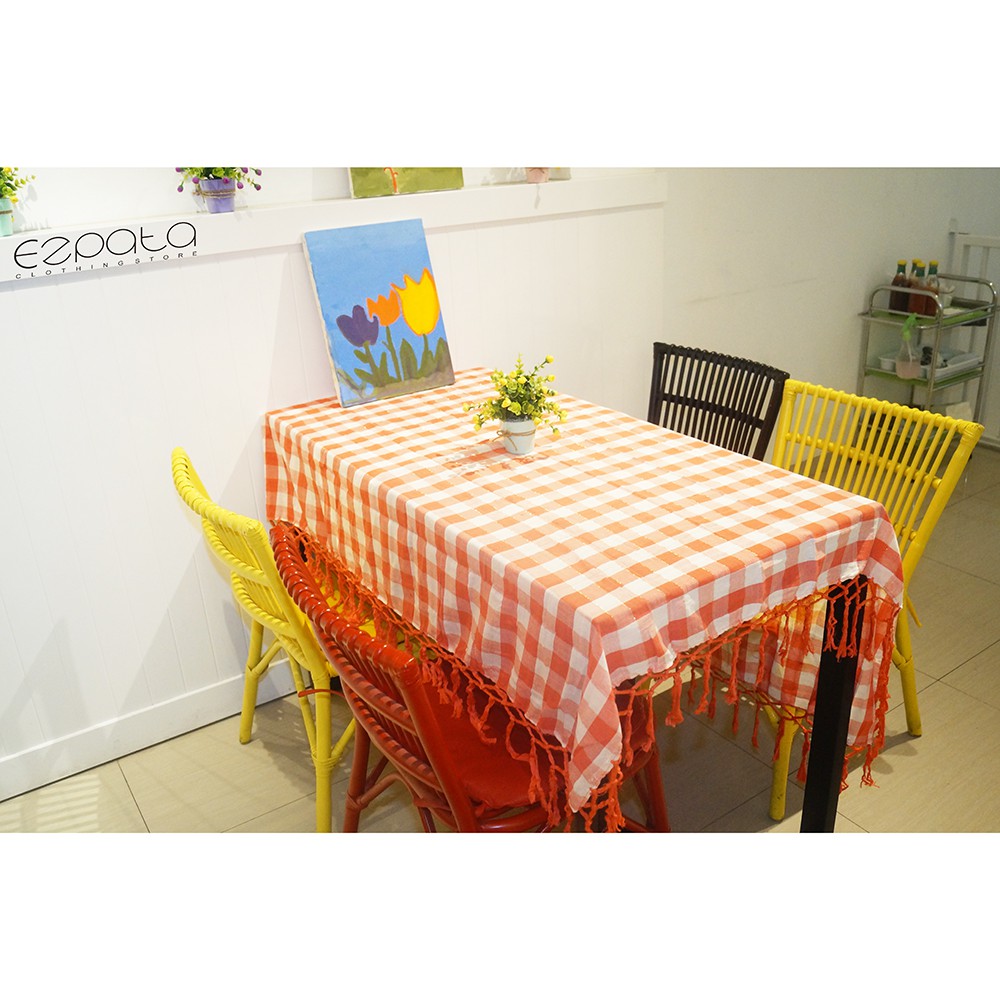 Taplak meja kain katun tenun kotak-kotak | Shopee Indonesia